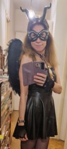 Je finis par fausser compagnie à tout le monde, j’entraîne un soumis dans le coin le plus reculé et sombre du donjon pour lui faire des misères. Évidemment, des amis me surprennent en plein élan, me taquinent, tandis que d’autres me demandent plus tard où j’étais passée « on t’a cherchée partout ! 😄 » – dur dur de faire des bêtises avec autant de chaperons veillant sur moi et ma vertu !
