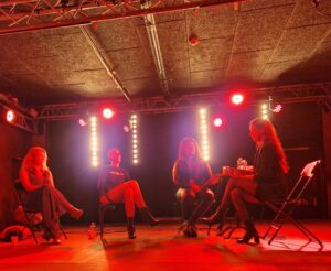 J’ai revu avec plaisir le show « Inferno » de mère dragon (juchée sur l’escalier en colimaçon, top), et aussi une démonstration de pet play, avant d’assister à la table ronde de Flore Cherry sur la littérature érotique ! Passionnants éclairages des trois intervenantes, Alda Mantisse, Juliette Bizol de Kink study, et l’animatrice des ateliers d’écriture érotique Eros.