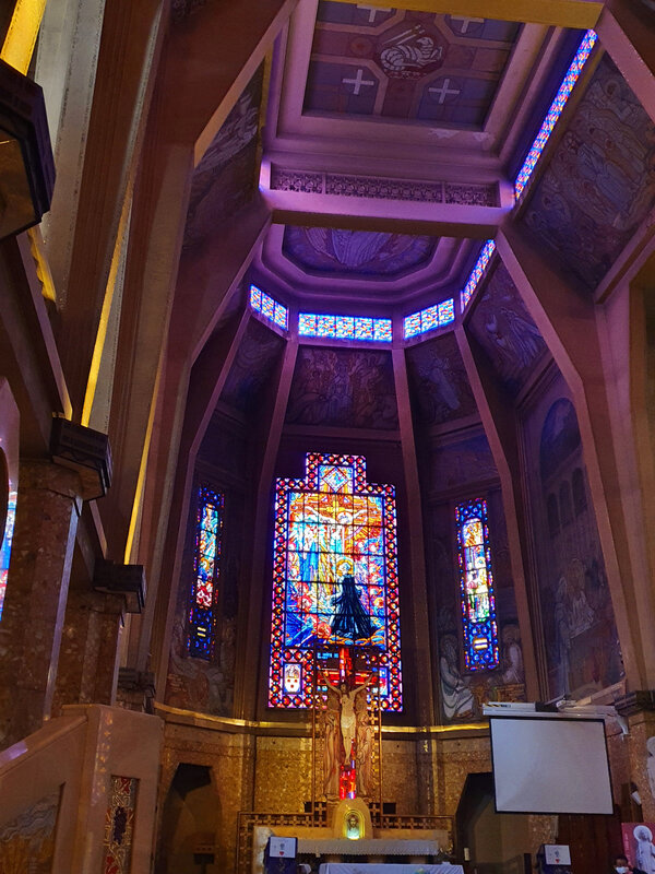 Je suis en manque de concerts, d’expositions, de spectacles… Je suis attirée soudain par de la musique, et j’entre dans un bâtiment majestueux, baigné de lumières colorées. Il y a un concert d’orgue, accompagné d’une flûte traversière, d’une clarinette, et des voix qui se mêlent ; toute une assemblée chante à plein poumons. Je frissonne, parcourue de skin orgasm des pieds à la tête !