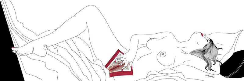 Le deuxième dessin, la belle liseuse érotique, a été réalisé à l’intention de La Bauge littéraire, site de chroniques de lectures érotiques. L’article ici présente les différents bandeaux du site.