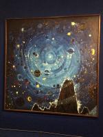 Quand j’ai vu le titre de l’exposition, je me suis sentie attirée comme jamais. Ce qui ne m’a pas empêchée de la visiter au dernier moment. « Au-delà », et ses connotations divines ; « étoiles », qui évoquent tout autant les soirées romantiques que les voyages inter-galactiques… Mes rêveries m’entraînent souvent vers le ciel, des pensées adolescentes d’éternité et d’infini. Les nuits d’été, en vacances, si l’on choisit de s’éloigner des villes, il suffit de lever les yeux pour être éblouis par la voie lactée et le scintillement des étoiles. Je m’étends sur l’herbe humide, et je m’envole au coeur de l’univers, jusqu’à de lointaines planètes, imaginant des histoires de science-fiction. A quand la rencontre que j’appelle de tous mes vœux avec un alien sexy ! Bon, même un être unicellulaire ferait l’affaire…IMG_8694
