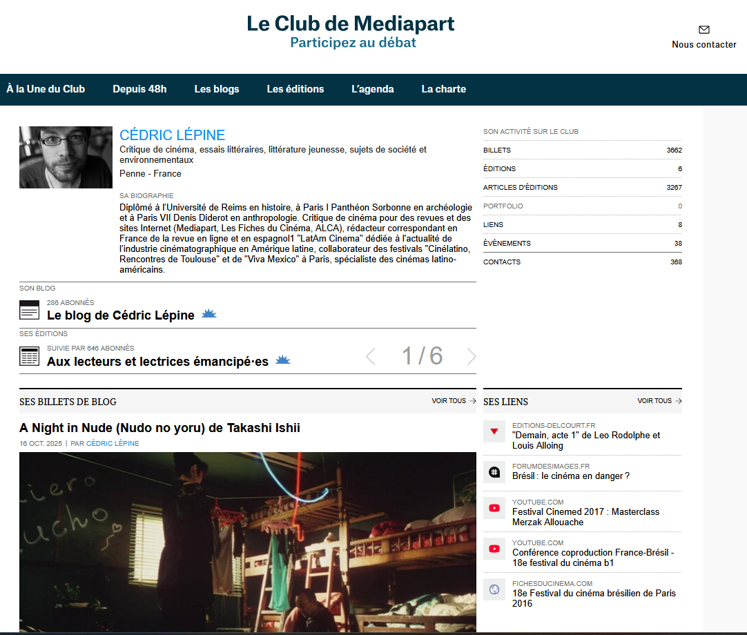 Cédric Lépine, critique cinéma, m’a interviewée pour son blog hébergé sur Mediapart. Vous pouvez lire …