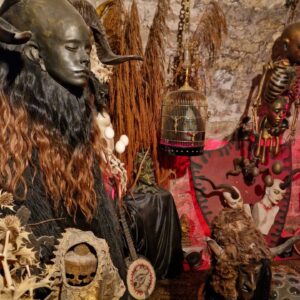 J’ai eu la chance de visiter hier les Caves de Sphaèros, musicien et performer : plusieurs caves voutées anciennes en enfilade qui regorgent du sol au plafond de trésors, antiquités ésotériques, bijoux, talismans, tableaux…