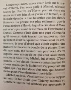 J’avais déjà lu de cet auteur Hervelino, car je voulais retrouver Hervé Guibert, dont j’aime tant l’écriture, et je me suis procuré ce nouveau livre, pour la même raison, retrouver à nouveau Hervé Guibert, cette fois entouré d’autres amis de l’auteur. Et finalement, je me suis attachée à Mathieu Lindon lui-même, auteur de l’intime, des émotions, qui se livre à nous, et qui en quelques pages devient comme notre ami.