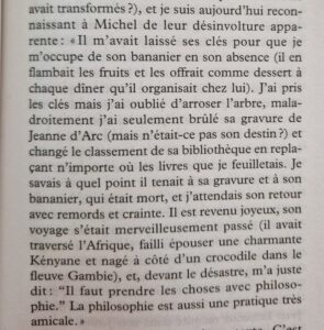 L’auteur restitue merveilleusement l’insouciance et l’insolence de la jeunesse, et ces années de grâce autour de Michel Foucault, devenu une sorte de deuxième père, dans ce grand appartement, personnage à part entière du livre, « squatté » entre amis dès que Michel Foucault, toujours indulgent et bienveillant pour ses jeunes amis, voyageait.
