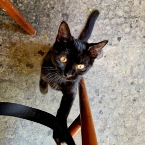 La sorcière touillait sa mixture caféinée en terrasse, incognito. Un chat noir survint néanmoins, l’ensorcela de ses yeux jaunes, avant d’offrir son ventre de velours à ses caresses…