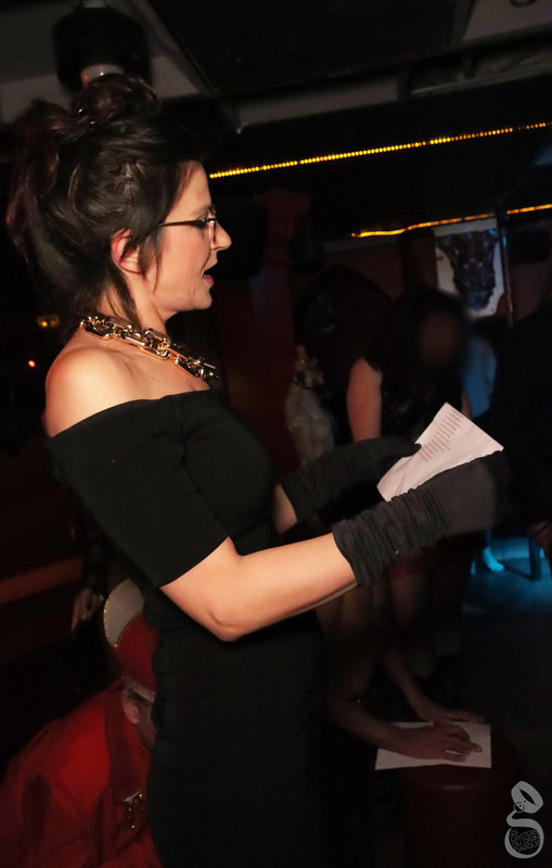 Nous redecendons, et arrivons pile poil pour le début de la dictée. Axelle de Sade commence par nous présenter l’école de la domination qu’elle vient de fonder : l’école des arts sadiens. Les différents cours programmés sont déjà presque complets.