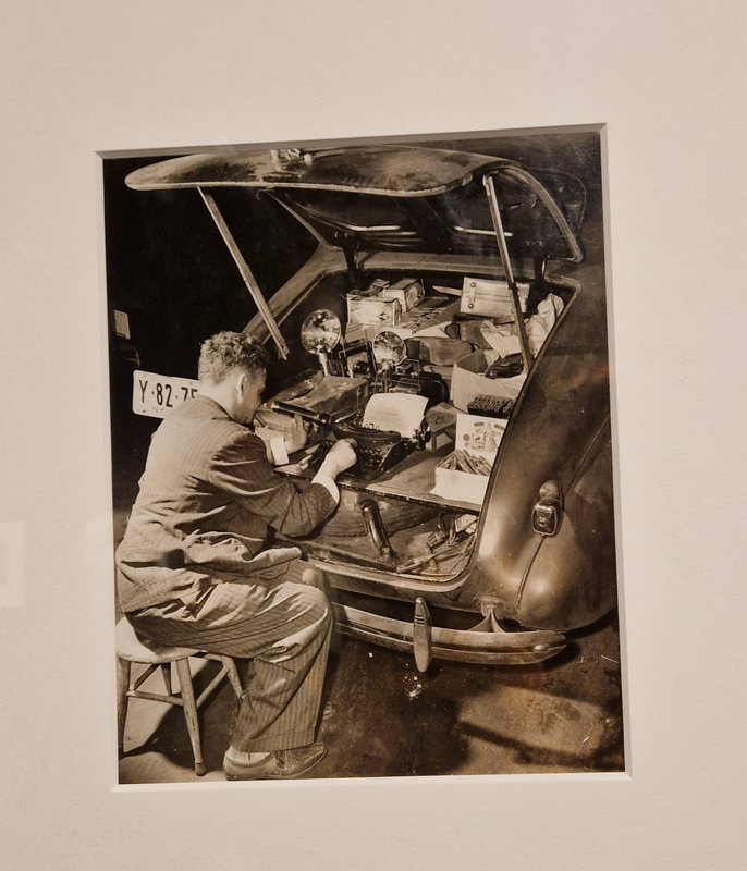 Il écoutait les échanges radio de la Police pour arriver au plus vite sur « les lieux du crime ». Dans le coffre de sa voiture, son bureau, équipé de sa machine à écrire. Il aimait photographier les visages de la foule, des badauds, au lieu du fait divers concerné. Les gens le nez en l’air, accoudés à la fenêtre… voyeurs et curieux.