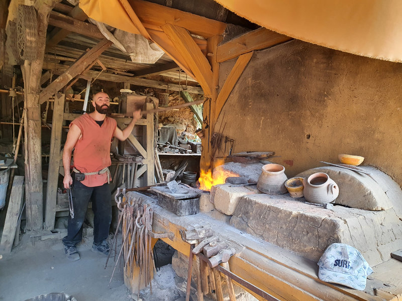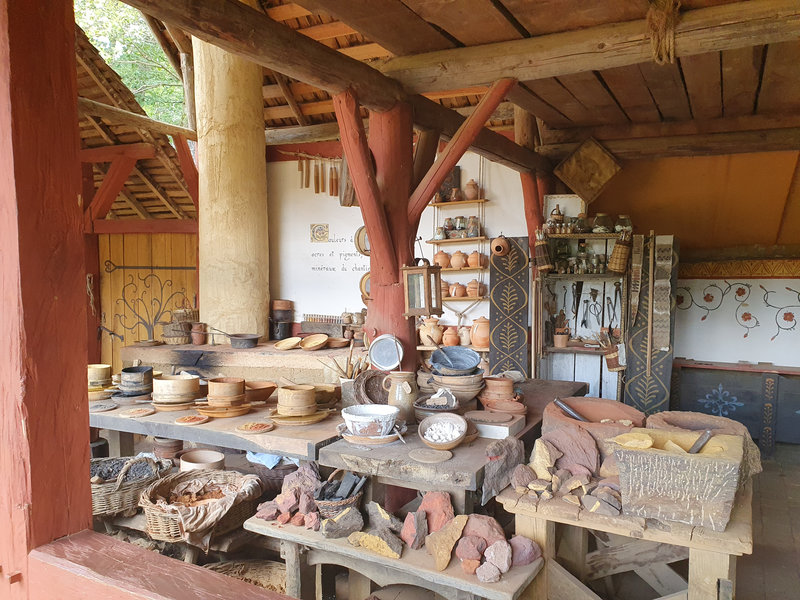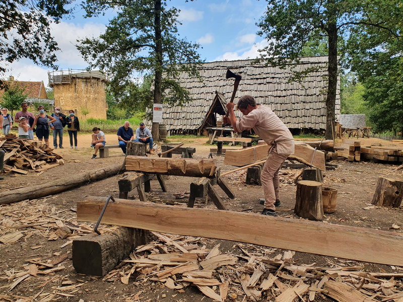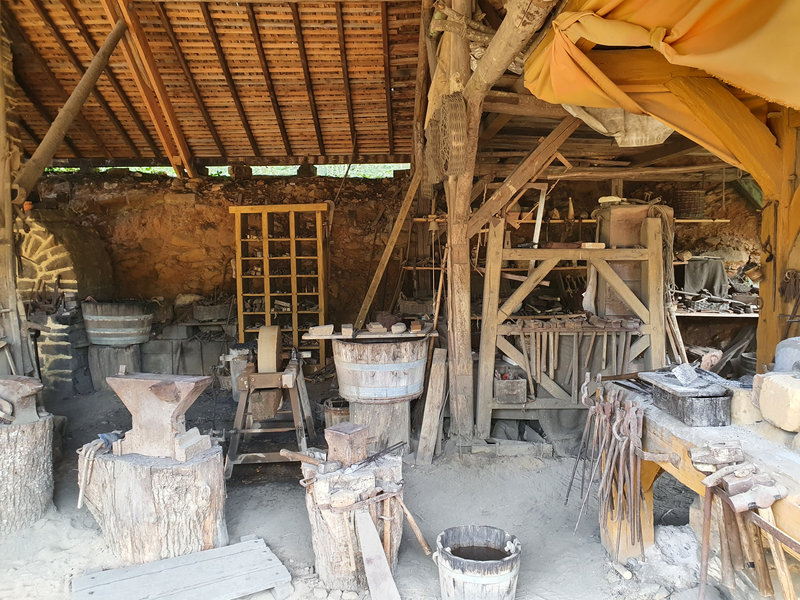 Tous les corps de métiers étaient réunis, vanniers, potiers, maçons, forgerons… des compagnons, des apprentis, tous passionnés, à l’enthousiasme communicatif ! Il ne manquait que le seigneur et sa dame, pour nous conter leur vie de fêtes, de banquets, et nous confier quelques secrets d’alcôve… du coup, à la boutique de souvenirs, retour aux fondamentaux à des fins de documentation