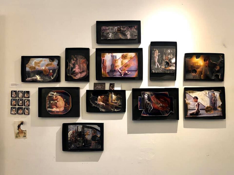J’ai aimé les œuvres présentées, les photographies, sculptures, dessins, autour du corps marqué, blessé, réparé ; tous différents et beaux. Les corps photographiés comme des bustes antiques de Louise Dumont, les photographies boursouflées et trouées par le feu de Vanda Spengler, une métaphore de la passion qui nous consume peut-être, les représentations du sexe féminin en papier plié, les photographies prises à l’hôpital, les photographies et dessins cousus, pour souligner la blessure… Des œuvres qui ne laissent pas indifférent, déclenchent des émotions ; elles m’ont remuée et serré le cœur.
