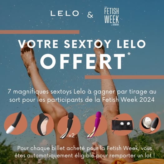 – Achetez votre billet pour la Fetish Week 2024 (si ce n’est pas déjà fait !), et vous aurez automatiquement une chance de gagner l’un des 7 se3toys LELO, d’une valeur totale de plus de 1000 € !