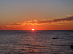 Le soir, entre un concert de rock sur la grande plage, et un guitariste romantique près du kiosque à musique, l’église a ouvert grand ses portes et s’illumine de mille bougies. Une vierge kitch entourée de guirlandes lumineuses trône sur le parvis. De jeunes religieuses sorties d’on ne sait où invitent les touristes à entrer. Une gentille dame de la paroisse vend des goodies : des chapelets en plastique, des médailles en fer blanc… elle me propose de piocher dans un panier une parole du christ.