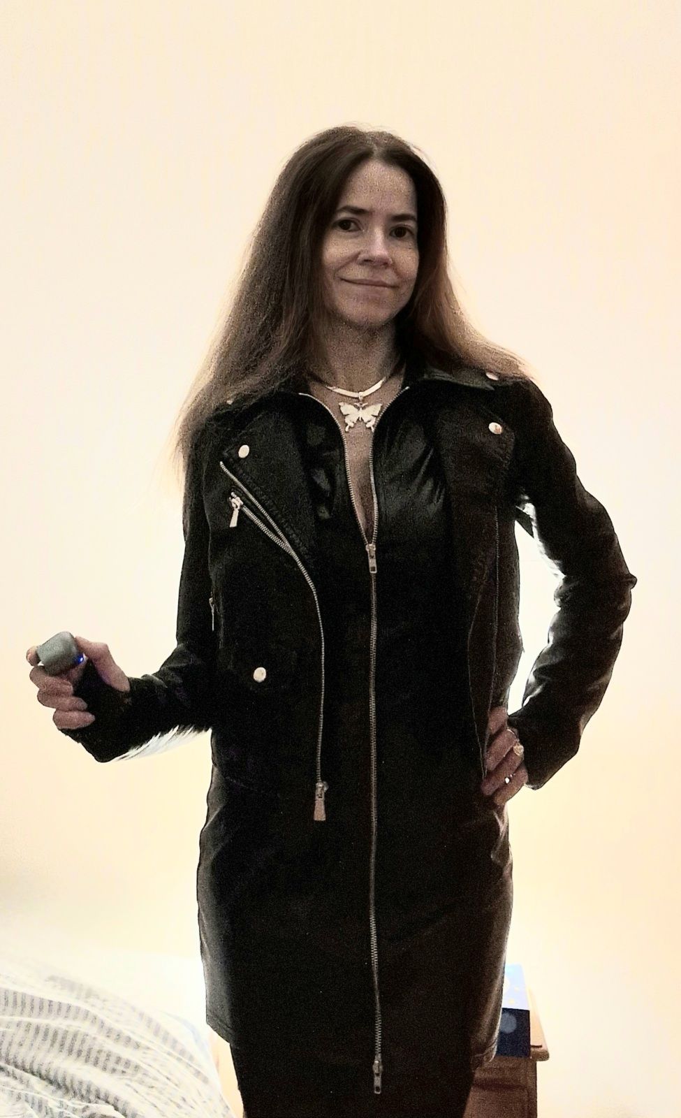 Ce soir, un seul dance-floor nous tend les bras, je le regrette un peu, mais d’un autre côté, ce sera plus facile de retrouver les amis, et les lieux se réchaufferont plus vite. Il fait encore un peu frais pour l’instant, mais prudente et avertie, j’ai gardé mon perfecto aux multiples zips sur ma robe fetish.