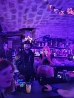 Un joli escalier en colimaçon nous conduit vers de vastes caves en pierres apparentes. Un deuxième bar nous accueille, festif à souhait, où les patrons jouent les barman et barmaid de choc et de charme,