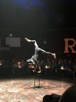 Les numéros s’enchaînent, poétiques, transgressifs, érotiques, plein d’humour souvent : jeunes filles évoluant sur des fils ou des trapèzes, jusque sous le chapiteau, jongleur époustouflant, artistes aux corps de rêve dansant autour d’une barre de pôle danse, s’envolant à l’aide de rubans… J’admire leurs acrobaties, leur façon de bouger, sensuellement, avec légèreté et force à la fois !