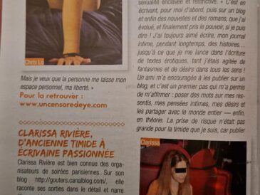 Merci Sandra Franrenet et le magazine du Monde pour cette visibilité que je n’aurais jamais osé espérer ! Je suis sûre que la littérature érotique contemporaine gagne là le coup de pouce qui lui manquait ! A cet égard, le témoignage de Marion Mazaurie m’a frappé, elle évoque l’âge d’or de la littérature érotique, dans le milieu des années 80, quand toutes les maisons d’éditions avaient leur collection érotique. Elles ont renoncé ensuite, la littérature érotique a disparu des rayons. Maintenant, si la romance pimentée rencontre un franc succès, l’érotisme pur continue de rester discret. Et pourtant, les French authors ne manquent pas d’idées pour se démarquer de leurs homologues américains !