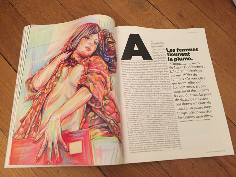 Je n’en reviens toujours pas, je suis citée dans M, le magazine du Monde ! Un immense merci à la journaliste, Sandra Franrenet ! Je ne peux m’empêcher d’être heureuse, fière, et confuse tout à la fois, car qui suis-je pour témoigner de la littérature érotique aujourd’hui… Heureusement, de nombreux auteurs, éditeurs, m’entourent et apportent leur voix au concert. J’ai reconnu, entre autres, Miss Kat, Octavie Delvaux, Flore Cherry, Julie-Anne de Sée, Anne Bert, ChocolatCannelle, Stéphane Rose, Frédéric Levêque, Jacques-Olivier Liby, Philippe Lecaplain…  Mais le mot de la fin, c’est une lectrice qui le donne !