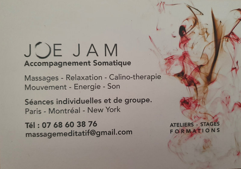 Le 5 février dernier, mon cœur a fait un bond : Joe Jam m’offrait un massage pour mon anniversaire ! Je connaissais Joe Jam, on s’était croisés lors de plusieurs événements, je savais qu’il pratiquait toutes sortes de massages, en particulier des massages très longs, ce qui me faisait rêver… Je me suis réjouie de sa proposition, bientôt différée par quelques couvre-feu, des restrictions variées, des semaines de vacances…