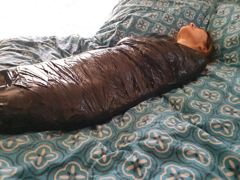 Moi qui ai toujours la bougeotte, j’aime me confronter à l’une de mes principales phobies : l’enfermement. Après avoir vécu des séances de shibari, une mise en cage (un bref moment !), j’ai expérimenté cette fois la momification.