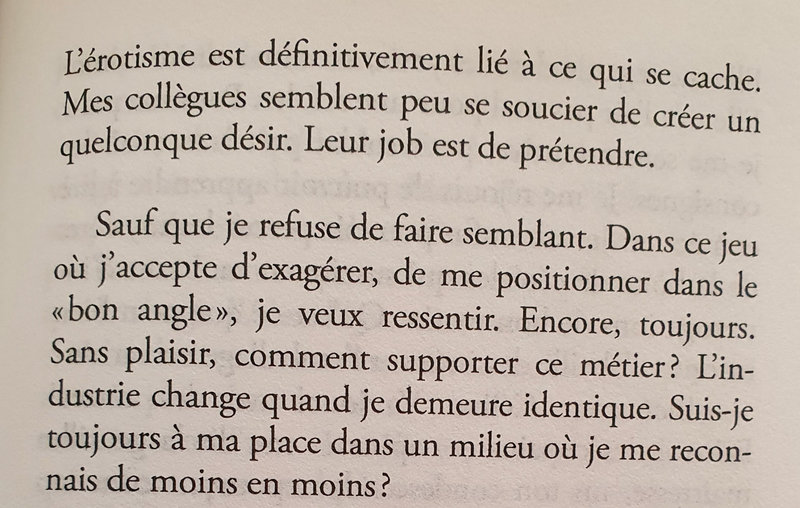 Au départ, j’avoue, j’étais animée par une curiosité « mal placée », sur le milieu du X ! J’étais avide d’anecdotes croustillantes, curieuse de l’ambiance des coulisses… Et puis j’étais intriguée, c’est vrai, par les raisons qui peuvent motiver un tel choix de carrière, un métier si engageant, si intime, puisque l’on prête son corps à toutes sortes de pratiques, pour un réaliser film, et non par désir ou par amour.