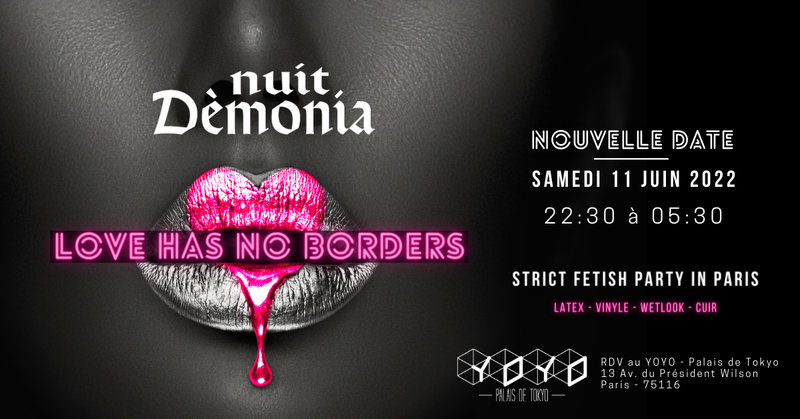 – Respecter le dress code de la soirée : vinyle, cuir ou simili, latex, wetlook, au moins pour le bas de la tenue ! Agrémenter d’autant d’accessoires que l’on veut pour s’amuser, se métamorphoser, coller au thème : masques, coiffes, ailes d’ange, crinoline… tant qu’ils ne nous empêchent pas de danser ou de circuler ! (Ou prévoir un soumis de soirée consentant pour les porter au fur et à mesure qu’ils nous encombrent). (De mon côté, je serai parfaitement dans le thème « Love has no borders », avec à mon bras l’accessoire ad-hoc, un ami étranger, venu spécialement pour l’occasion !)