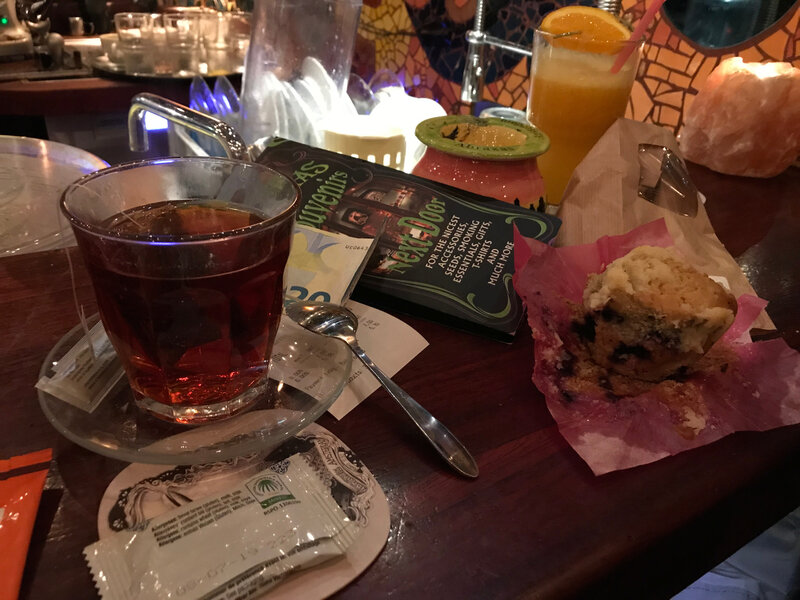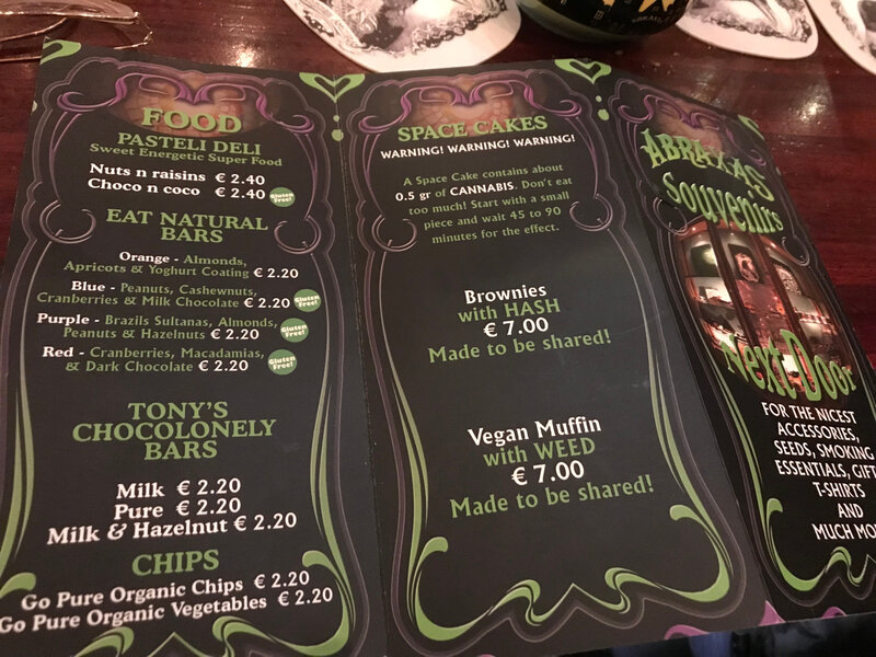 Il fait décidément trop froid. Nous faisons une petite halte dans un coffee shop et nous penchons sur la carte. Mon compagnon de voyage me convainc de tenter un space cake, sous la forme d’un brownie ou d’un muffin. Je préfère les muffins, on le sépare en deux, sagement. Un pour deux, cela semble raisonnable, prise de doute, je questionne la serveuse :