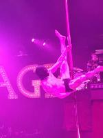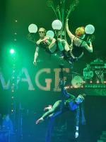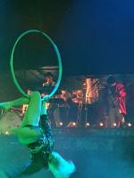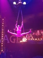 J’ai aimé aussi les acrobates voltigeant dans les airs, dans des rubans, des chaînes, un cerceau, sur une balançoire en élastique, autour d’une corde ou d’une tige en métal… Vertigineux ! Des jeunes femmes espiègles et impertinentes, un homme au corps sculpté qui nous offrira un final étourdissant en tournoyant nu dans les airs… Waou !