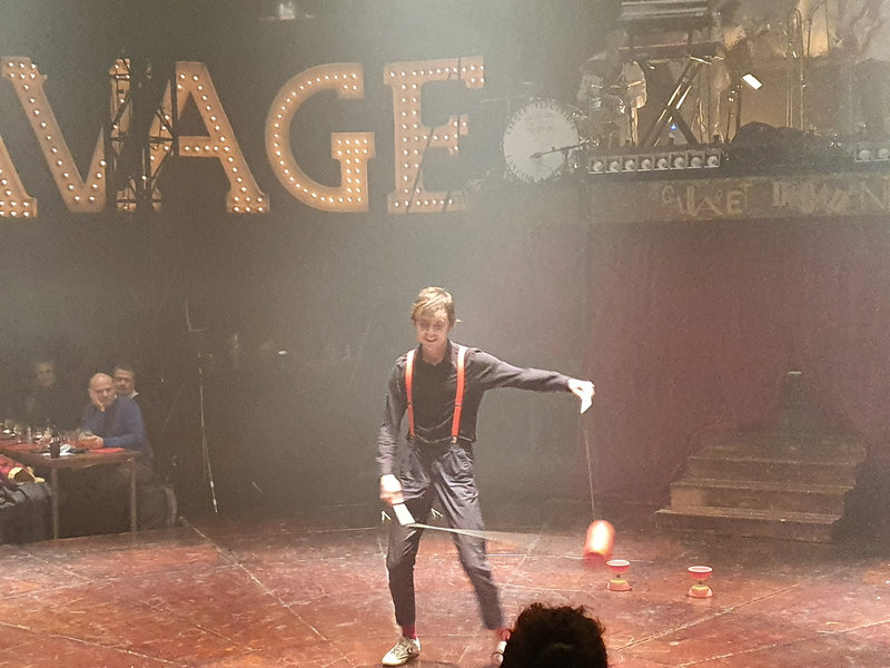 J’ai craqué sur l’artiste contorsionniste, impressionnante de souplesse, réussissant à fumer pendant tout son show avec ses pieds ! Trop forte en Hula hoop aussi, impressionnante et malicieuse… et j’ai aimé le jongleur capable de jouer avec plusieurs diabolos à la fois, avec le sourire, facilité et fluidité…