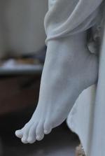 Le prêtre s’éponge le front, la messe doit se poursuivre, ses fidèles le fixent avec étonnement. Bientôt, ils vont s’inquiéter, certains chuchotent déjà entre eux. Il rassemble ses idées, ouvre son grand livre au hasard. Où en était-on déjà ? L’image du fin pied blanc s’impose, il ne peut penser à rien d’autre ; comme il aurait aimé s’occuper de l’autre pied aussi, comme il doit être froid, triste d’avoir été délaissé… Diligent, son petit servant de messe tourne les pages pour lui et pointe du doigt le passage. Ah oui, le Sanctus ! L’orgue pousse sa première note sinistre, le faisant vibrer des pieds à la tête et le ramenant à son devoir. Il entonne à sa suite, Sanctus, Sanctus. Les fidèle anonnent à sa suite, soulagés.