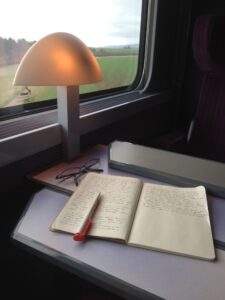 J’écris sur tous type de supports et en tous lieux : tablette, téléphone, carnet… ensuite, je dois « recoller » les morceaux sur mon ordinateur. Le téléphone a longtemps eu ma préférence, mais mes bras s’en souviennent encore (double tendinite !)