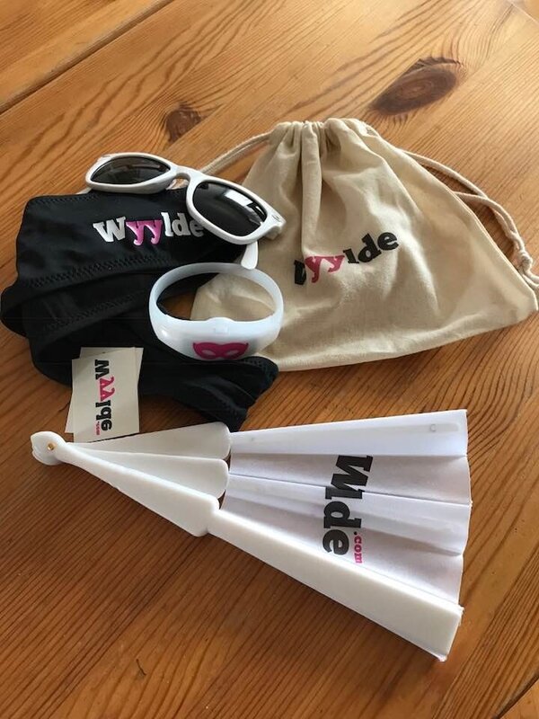 On nous offre un sac empli de cadeaux pour nous consoler : un string au logo de Wyylde, des lunettes de soleil, des tatoos… tout ce qu’il faut pour partir en vacances direct, pourquoi rentrer ? 😉