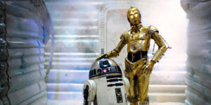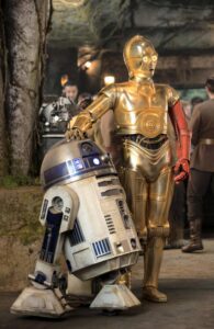 Ce qui participe aussi au plaisir de la saga, (comme souvent d’ailleurs), outre les décors fabuleux et les vaisseaux spatiaux, ce sont ses personnages secondaires : l’amitié improbable entre ces deux robots, dont l’un ne parle même pas, tous les deux tellement attachants, naïfs, et drôles, la petite touche d’humour pour alléger la tension des combats.