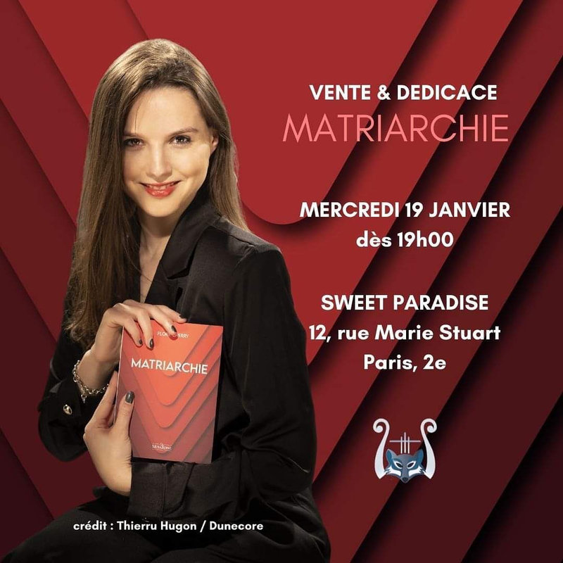 Flore Cherry organisait une soirée dédicaces de son premier roman Matriarchie, qui vient de paraître aux Editions La Musardine. Je suis en train de le lire, c’est de la bombe ! Un régime gynarchique se retrouve au pouvoir, dans un avenir proche… quelle bonne idée 😉 ! Je me régale ^^. (Bientôt une petite chronique sur mon blog)
