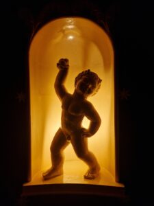 Le spectacle se déroule à La Nouvelle Eve, cabaret au décor kitch et boudoir, avec ses mignonnes statuettes d’angelots partout. On n’a pas résisté à un mini-shooting entre amies avant l’ouverture des rideaux !