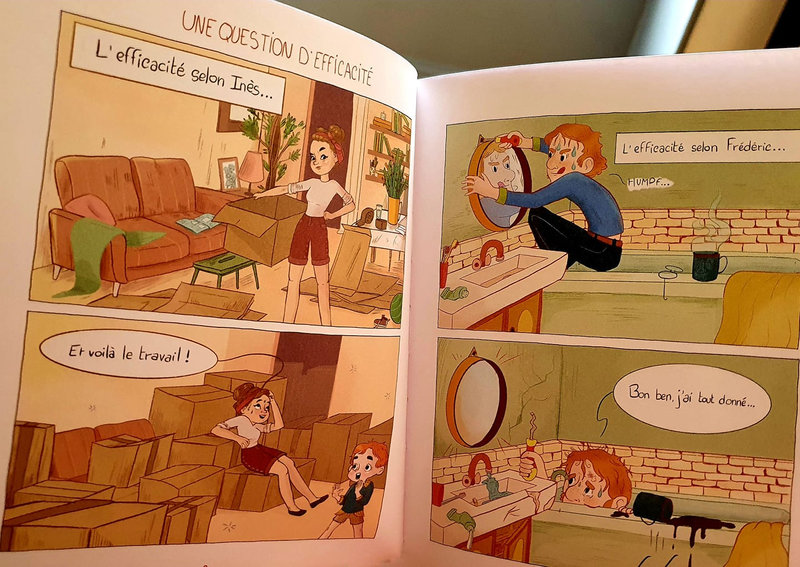 Cela fait un bon moment qu’on ne montre plus les femmes à la cuisine et les hommes lisant leur journal dans les livres jeunesse, et c’est très bien ! Mais je me demande si on ne va pas un poil trop loin là, en ridiculisant l’homme…