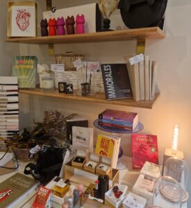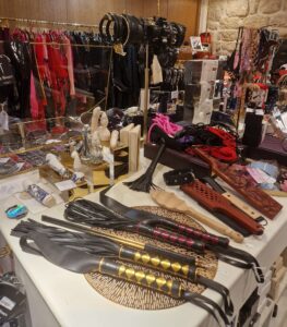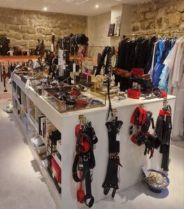 Cela faisait longtemps que j’avais envie de visiter Vous Monsieur. J’y suis enfin allée mardi dernier, et j’ai eu un coup de cœur pour cette boutique ! Il s’agit d’un « concept store » autour de l’érotisme et de l’univers fetish : on y trouve des vêtements sexy et fetish, des accessoires bdsm (paddles, martinets, fouets, colliers, menottes…, des produits de bien-être (œufs yoni…), des bijoux, des carnets ravissants avec des scènes de domination féminine… Tout est choisi avec beaucoup de soin et de goût, et les tentations sont nombreuses, dans chaque rayon ! Il y a des pièces magnifiques de créateurs, et aussi des accessoires à des prix tout à fait abordables (je me suis fait plaisir !)