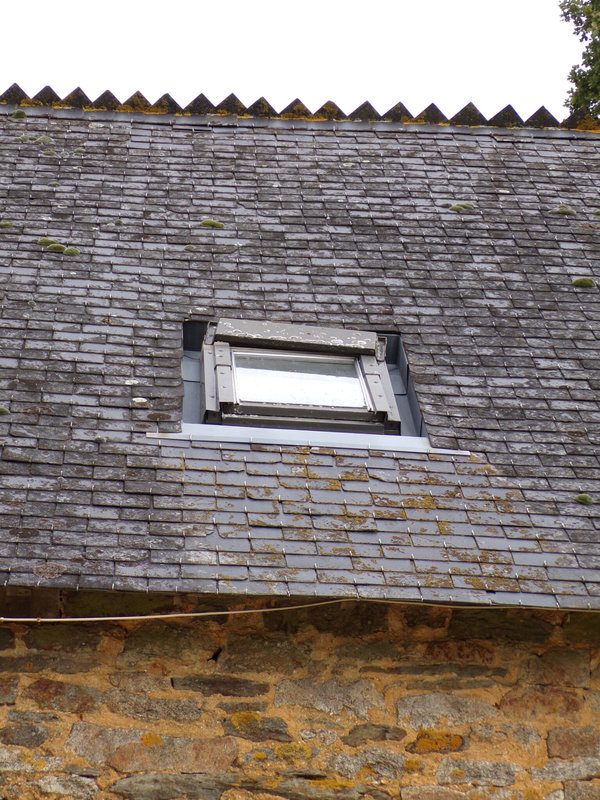 Des tuiles de son toit s’étaient envolées avec la tempête. Il grimpa sur une échelle pour vérifier les dégâts. Il se figea soudain : à travers la lucarne du grenier, une jeune fille le scrutait.